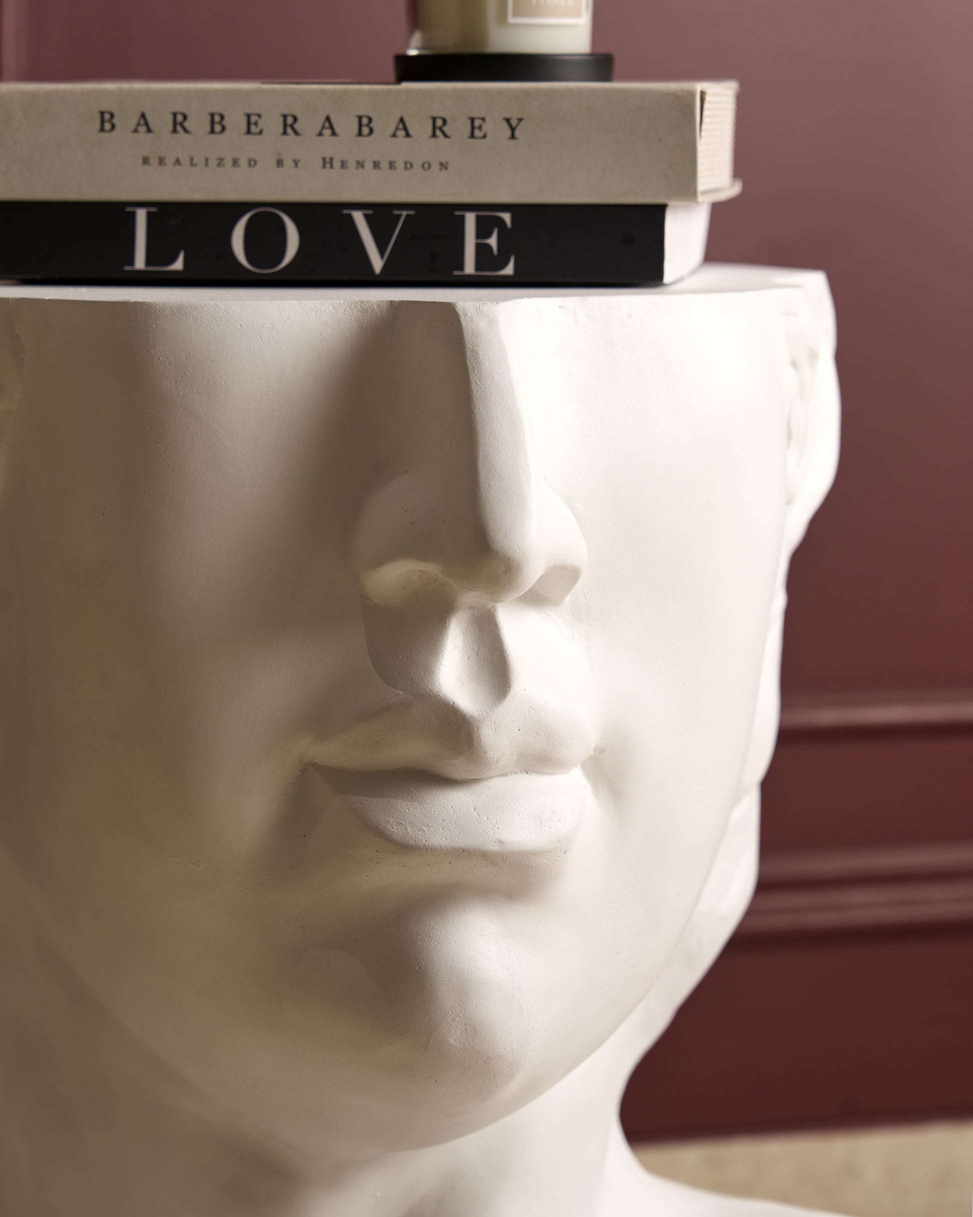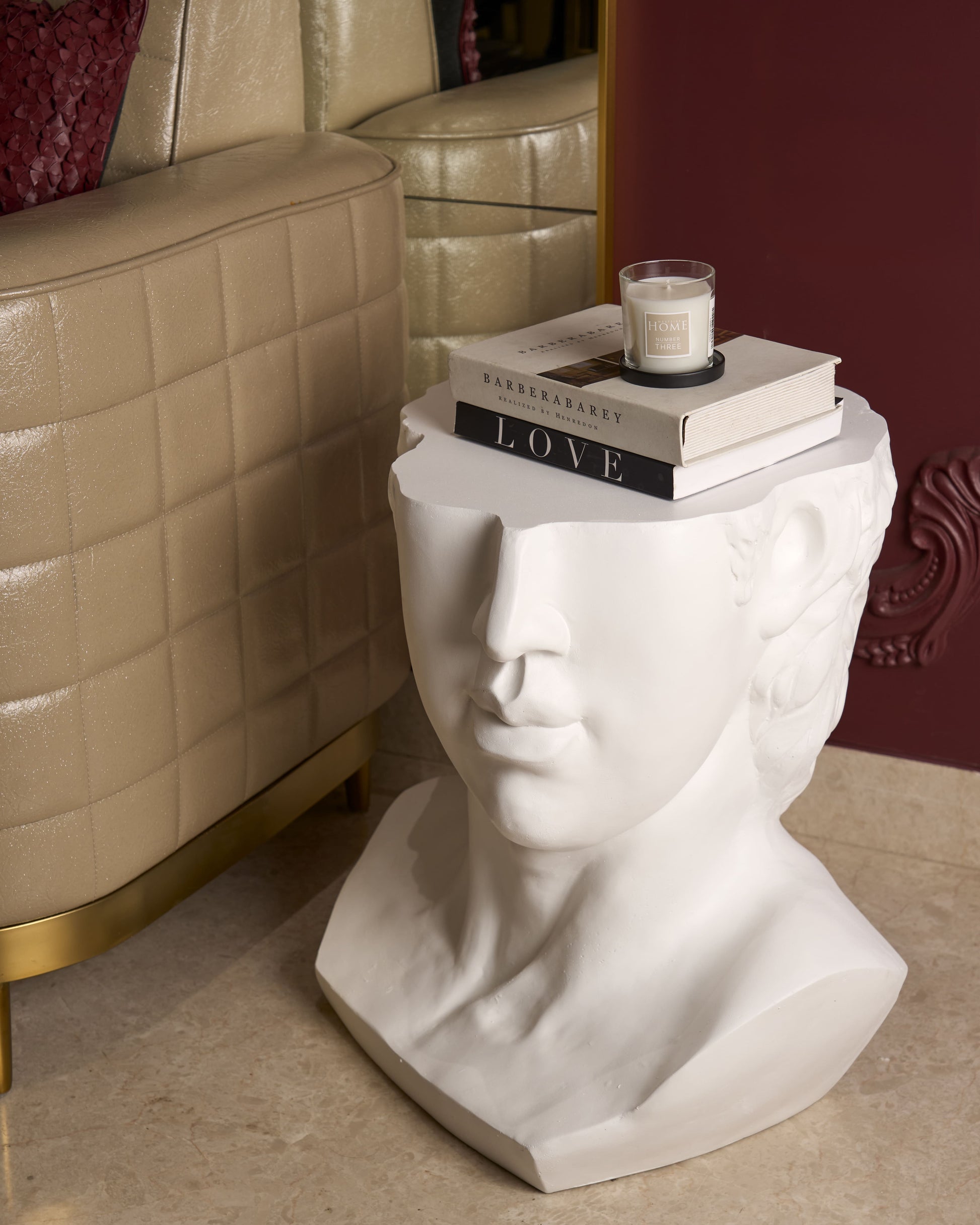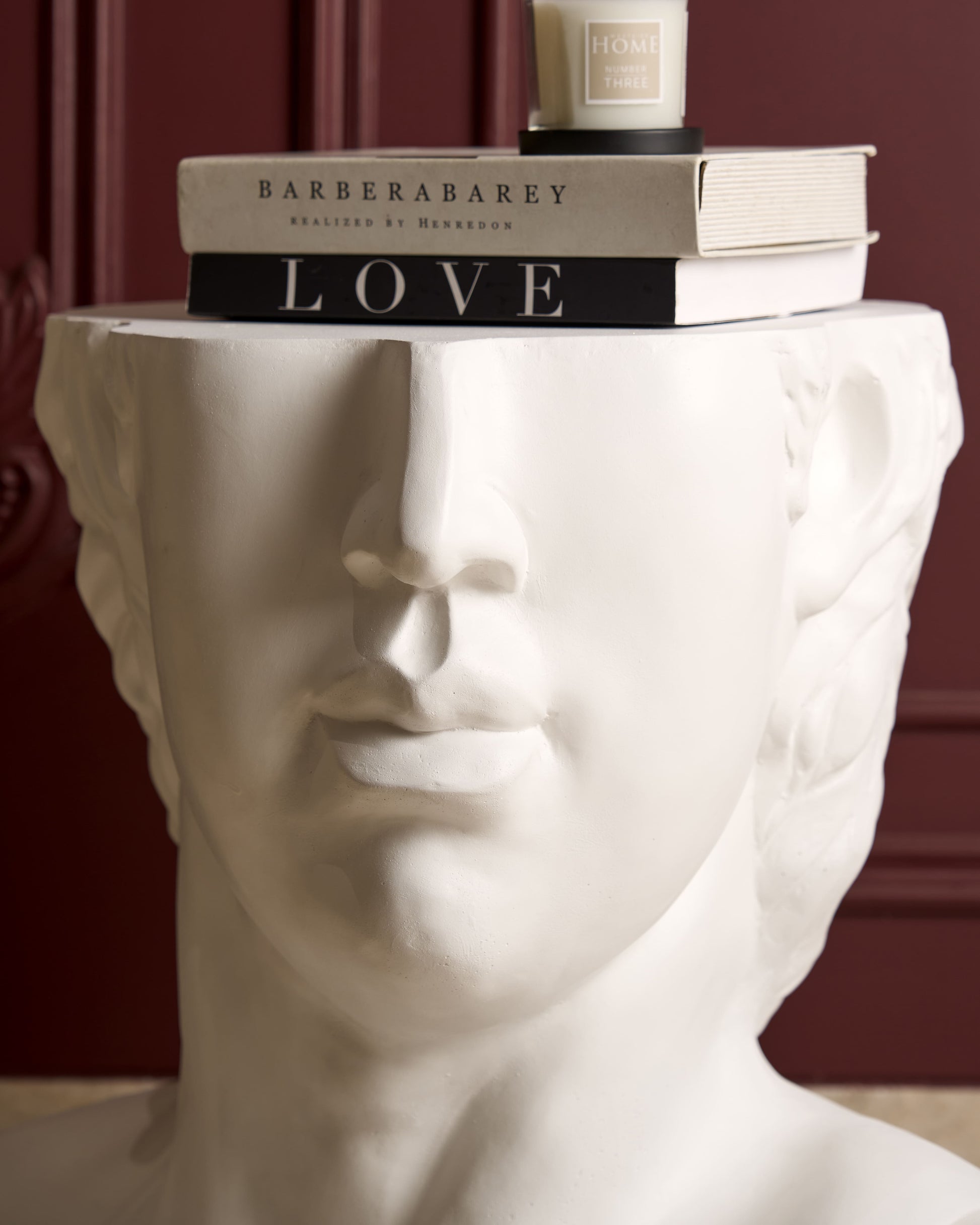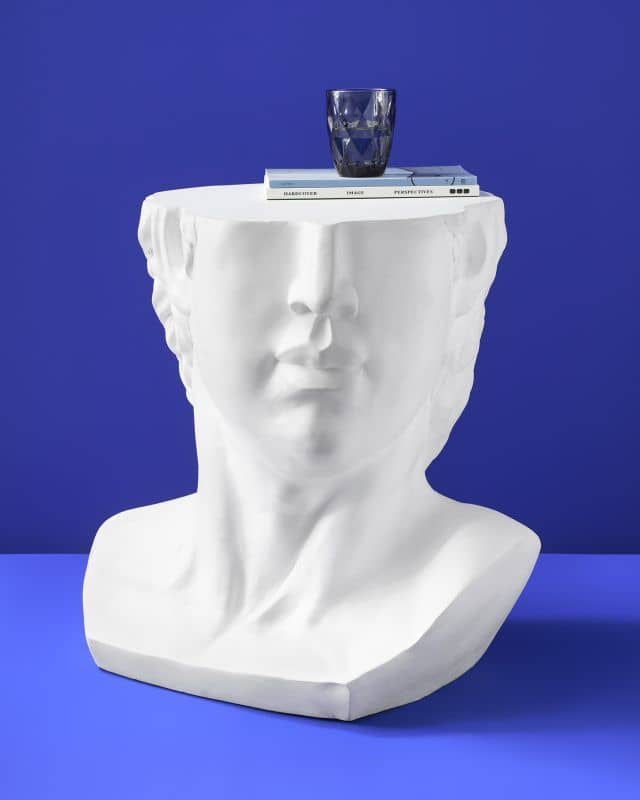 Whether he's adding drama to your living room or guarding your bedside, this table is here to bring timeless art and edgy vibes to your space. Who needs a pedestal when you've got David holding things down?
